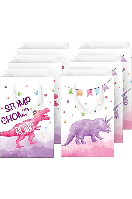 Amazon Com Blue Panda Dinosaur Birthday Party Favor Bags Small Pink Totes 24 Pack Toys Games